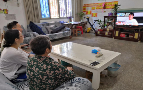 媒学院学生自发在宿舍、在返家途中、在家中与家人一起观看