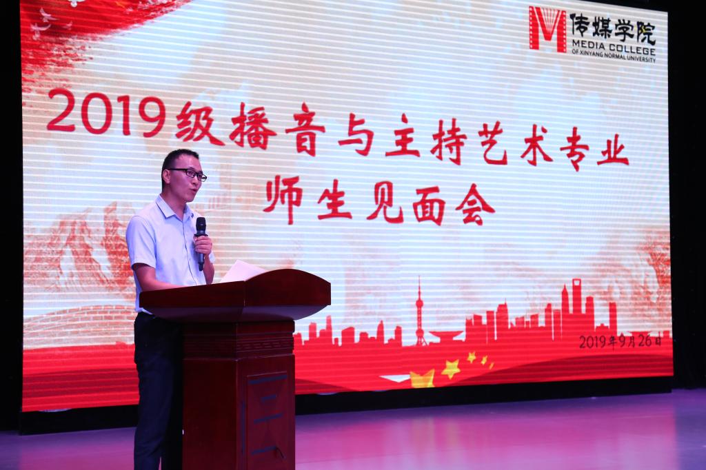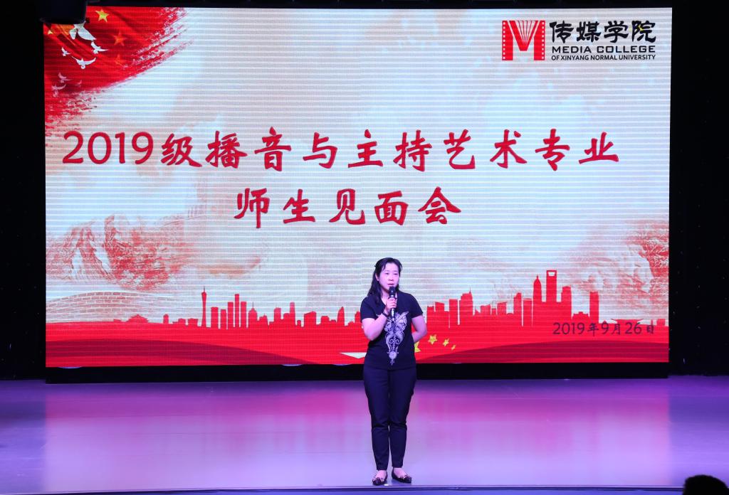 9月26日,2019级播音与主持艺术专业师生见面会在社科楼演播厅举办。院长焦素娥,副院长刘想如,教学秘书郜扬,播音主持系主任张世海博士,副主任张衡、张杰及全体教师参加见面会。见面会主题是认识专业老师,了解学习内容,做好学习规划。见面会由张杰主持。