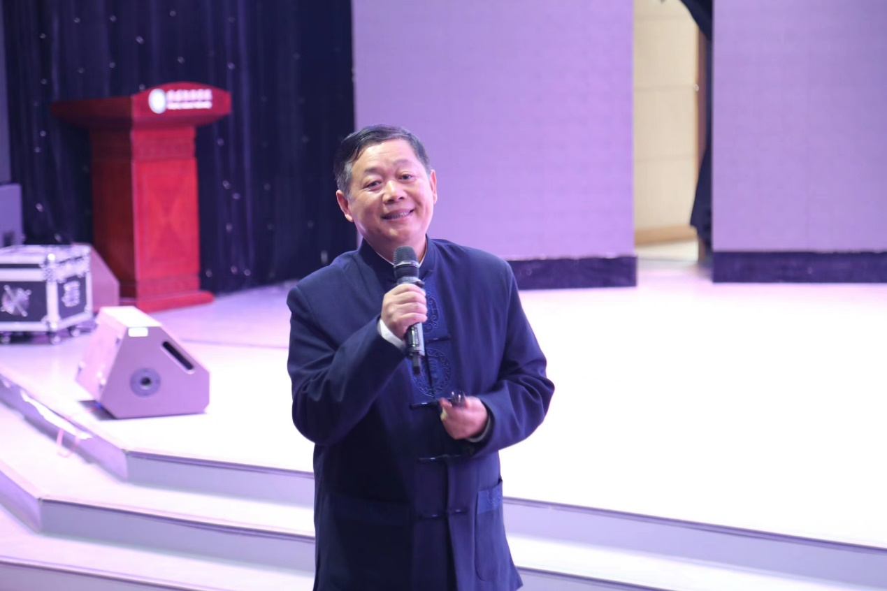 胡巨成以党的二十大报告中“讲好中国故事,传播好中国声音,展现可信、可爱、可敬的中国形象”的思想内涵为切入点,提出讲好中国故事的重要性。他强调,讲故事要做到“真实、真诚、真切”三个原则,即故事本身要真实、讲故事的态度要真诚、故事内容要真切。对于如何讲好中国故事,胡巨成进行了三个层次的归纳总结:一是“顺溜”,即通顺流畅、符合逻辑,禁止出现语言的“套娃效应”;二是“折腾”,讲故事切忌流水账,要抓重点、多想象、敢折腾,故事内容要情节曲折、张驰有力,要把材料变成自己的话,不能被原有框架所束缚;三是“空灵”,他认为“空灵”是讲好故事的最高境界,是做人做事做文的通透状态,是一切艺术的共性。结合自身多年从事新闻记者的工作经验,胡巨成先生引经据典、传道授业,通过一个个生动形象、风趣幽默、精彩绝伦的故事,极具专业培养、为人处世的哲理和启发,赢得了在场师生的热烈掌声。最后,胡巨成先生用自己的书法作品“处处留心皆学问,深入浅出即文章”来勉励同学们要夯实专业基础、增强文学功底,做到心中有故事,故事有温度。