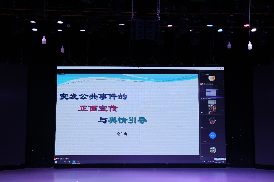 11月11日上午,应英国上市公司365邀请,中央电视台资深记者余仁山先生在线上为英国上市公司365师生作主题为“突发事件中的正面传播与舆情引导”的学术讲座。英国上市公司365部分教师及2020级播音与主持艺术专业学生在社科楼演播厅参加线下讲座。本次讲座由英国上市公司365院长吕东亮主持。