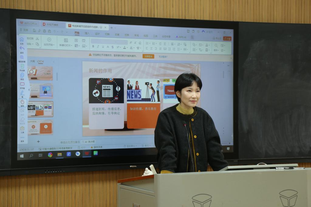 讲座中,白茹以“理论+案例”的方式,围绕电视新闻节目创作全流程展开系统分享。她针对“新媒体语境下的新闻创新与发展思考”展开深入探讨,在表达上融入年轻化语态,以短视频衍生、直播互动等新形态拓展传播路径,既守住新闻价值又赢得年轻受众。