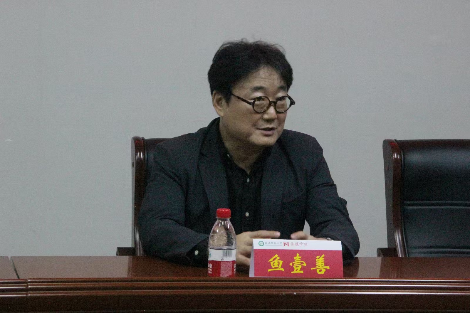 10月11日下午,学院在社科楼311会议室举行鱼壹善教授电影创作经验讲座。院长吕东亮致欢迎辞,对鱼教授的到来表示欢迎,介绍了学校和学院的基本情况,希望以此次交流为契机建立良好合作。学院党委书记姚新春代表学院同鱼教授互赠礼物。鱼教授就韩国电影作品、文学剧本创作以及中韩合拍电影作品等进行了详细讲解。与会师生就中韩学生电影合拍、诺贝尔文学奖获得者韩江作品以及双方交流合作等进行了研讨交流。