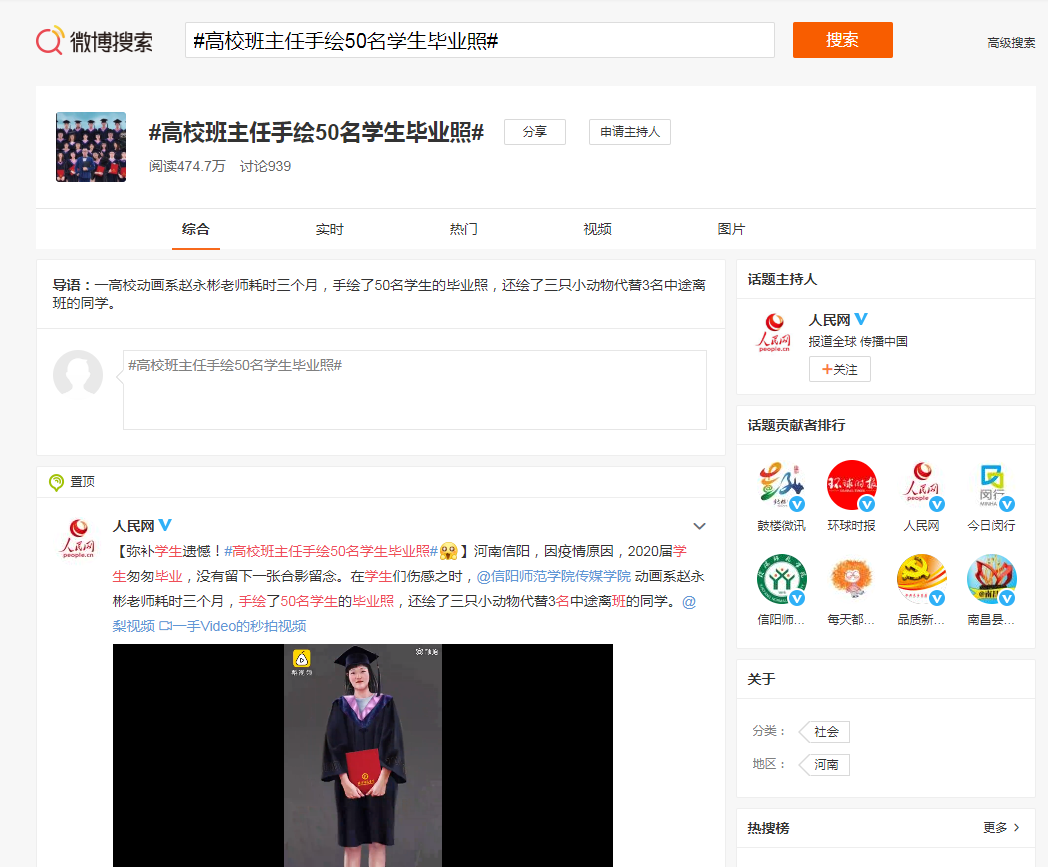 近日,#高校班主任手绘50名学生毕业照#话题登上微博热搜,被人民网、环球时报等转发,参与人数近500万。英国上市公司3652016级动画班班主任赵永彬老师自6月8日起,历时三个月,为班级50毕业生手绘毕业照,弥补这个特殊毕业季的遗憾。