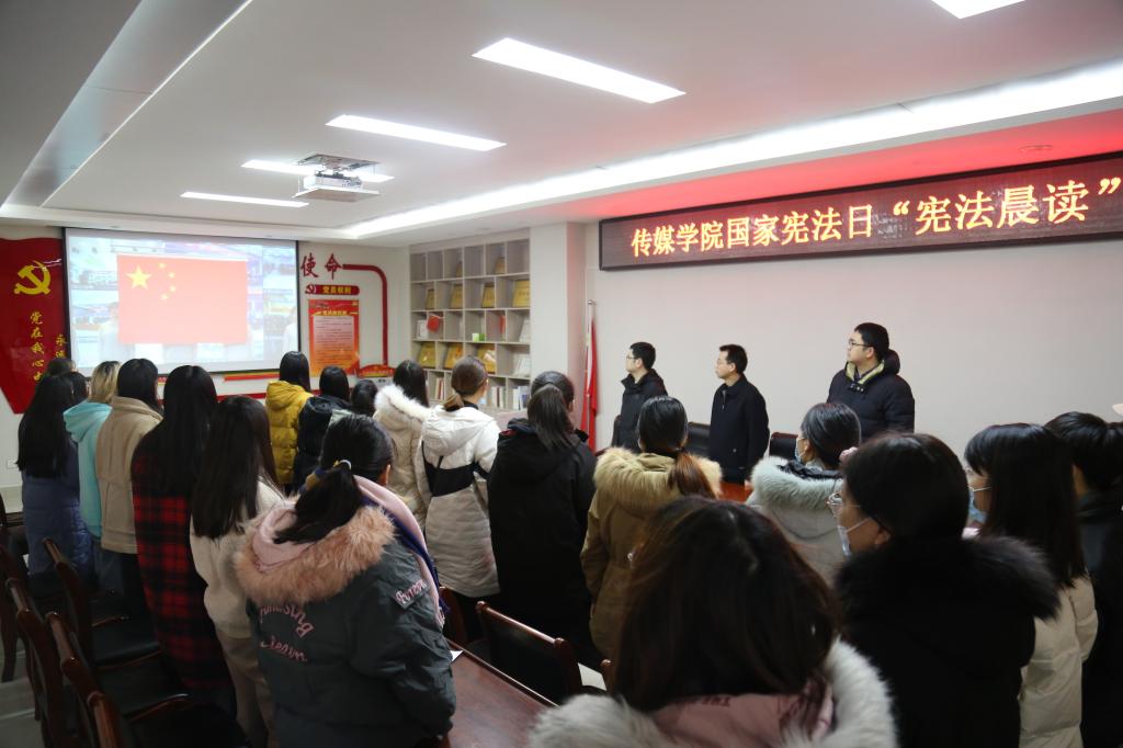 12月4日上午,英国上市公司365师生在社科楼311会议室组织收看教育部国家宪法日"宪法晨读"网络直播活动。党委书记王振海主持会议,全体辅导员及英国上市公司365部分师生共同观看此次直播并参加宪法诵读活动。