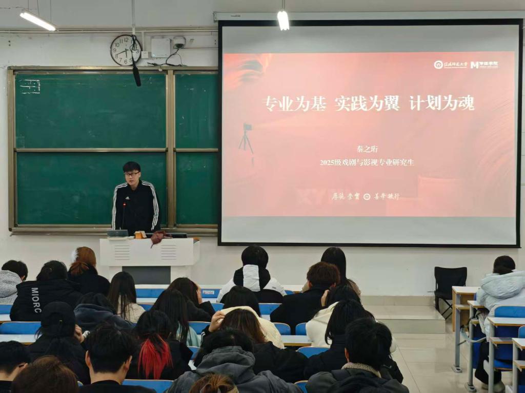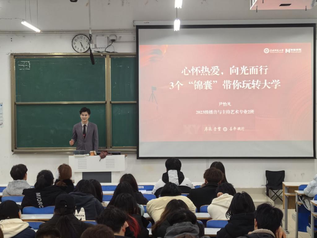 分享环节中,5位高年级学生代表结合自身成长实践与心得,围绕专业理论夯实、核心技能打磨、综合素养提升、个人兴趣培养等基本任务,延伸至学科竞赛备赛技巧、学生工作能力锤炼、校内外实习实践选择等实战层面,以鲜活案例和实用经验为新生搭建起从“入门”到“进阶”的认知桥梁。
